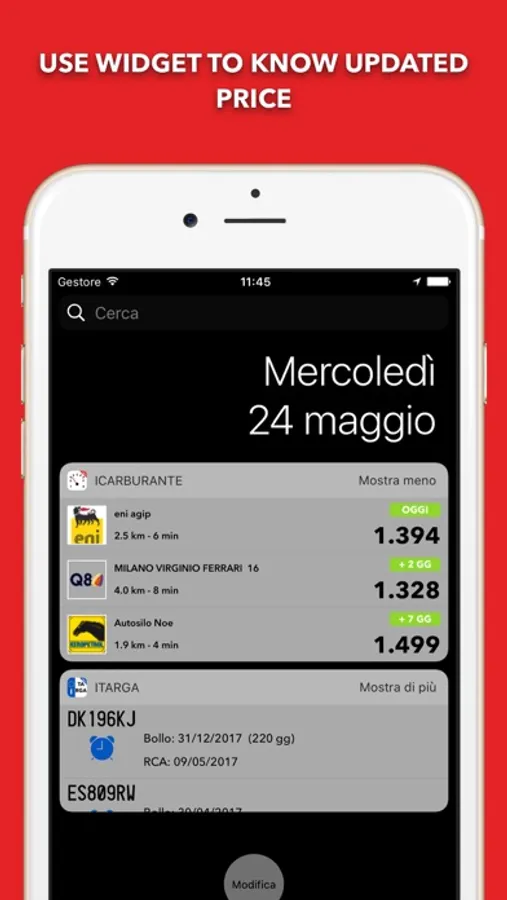 • Get quick access information with iCarburante Today widget about your favorite gas stations.
