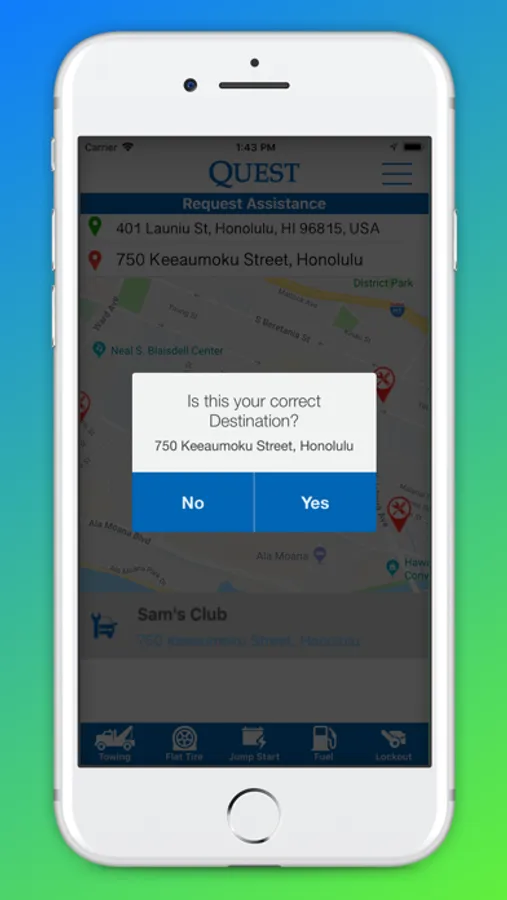 Quest Roadside Assistance is available when you need it. Download this application to request assistance, and we will send a Service Provider to your location.