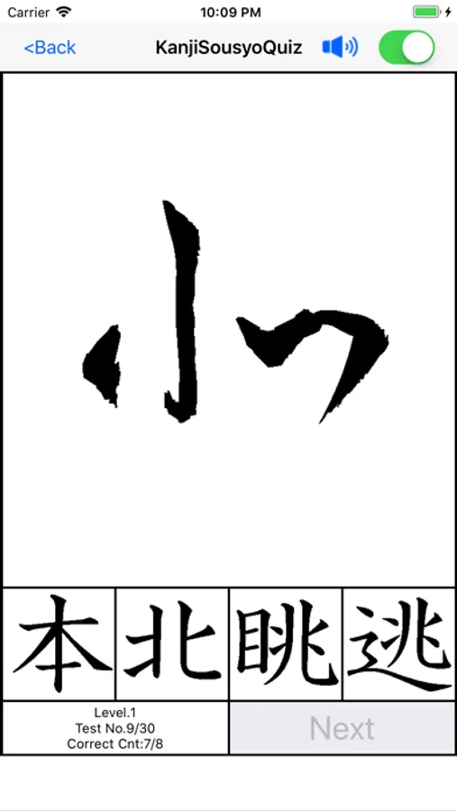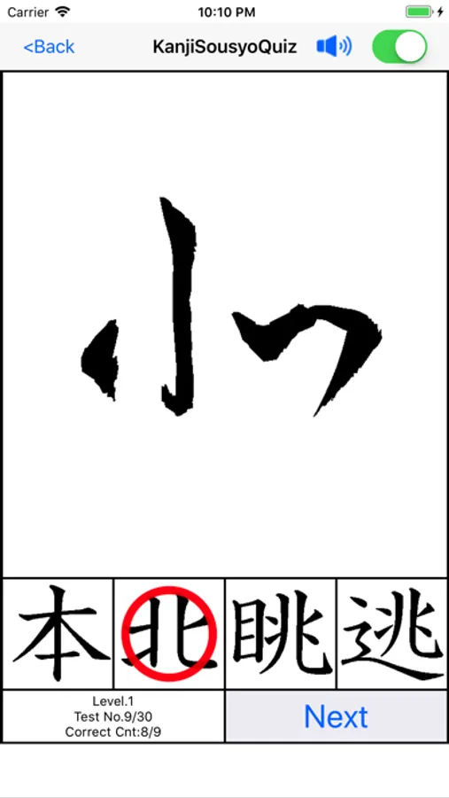 Please tap the same kanji as the left or upper cursive letter. It is 4 choices.