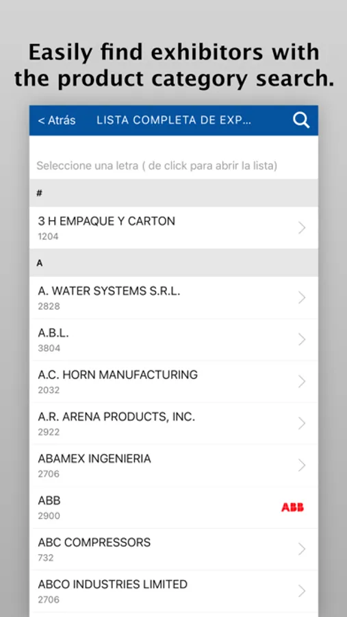 1. Encuentra el stand de tu expositor de forma rápida y sencilla.