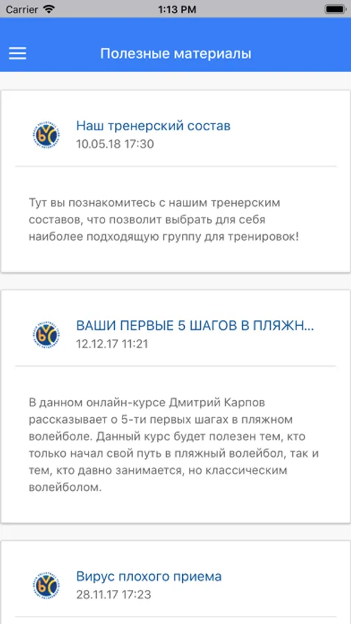 Возможность получать уведомления и напоминания о тренировках, читать актуальные новости Академии в ленте новостей и множество других нужных и полезных функций.