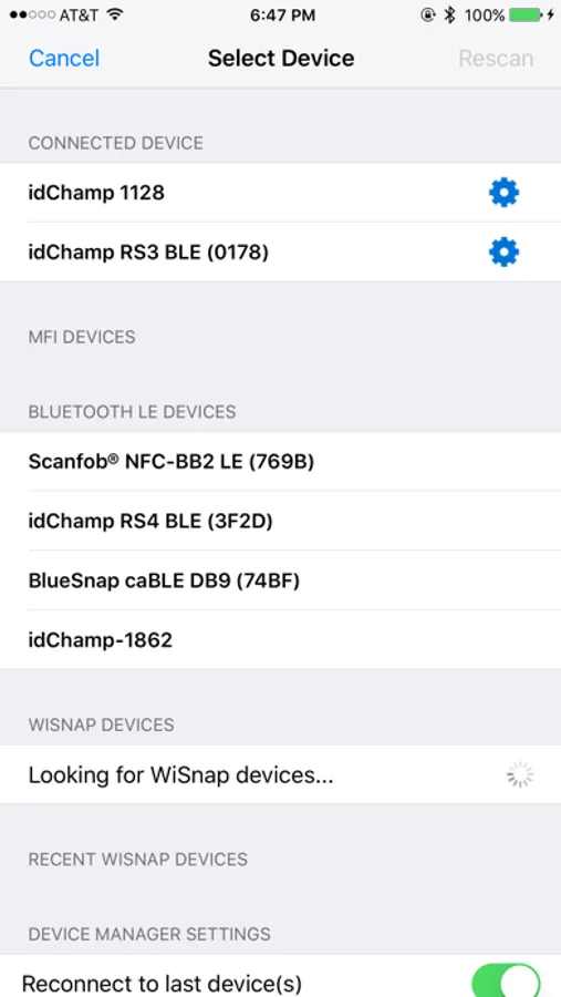 iScanBrowser supports more brands of barcode and RFID readers than any product of its kind, including Scanfob® brand UHF, NFC, Barcode, idChamp(tm) RS3, Captuvo®, and many others, as well as numerous Bluetooth Smart (aka BLE), and MFi (Made for iOS) Bluetooth devices including Socket CHS family, Allflex RS420, Koamtac KDC Family, TSL UHF family, Tertium Blueberry family, CAEN qID family.