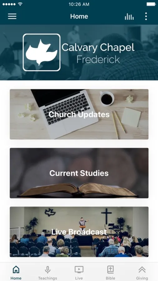The Calvary Chapel Frederick app was developed with the Subsplash App Platform.