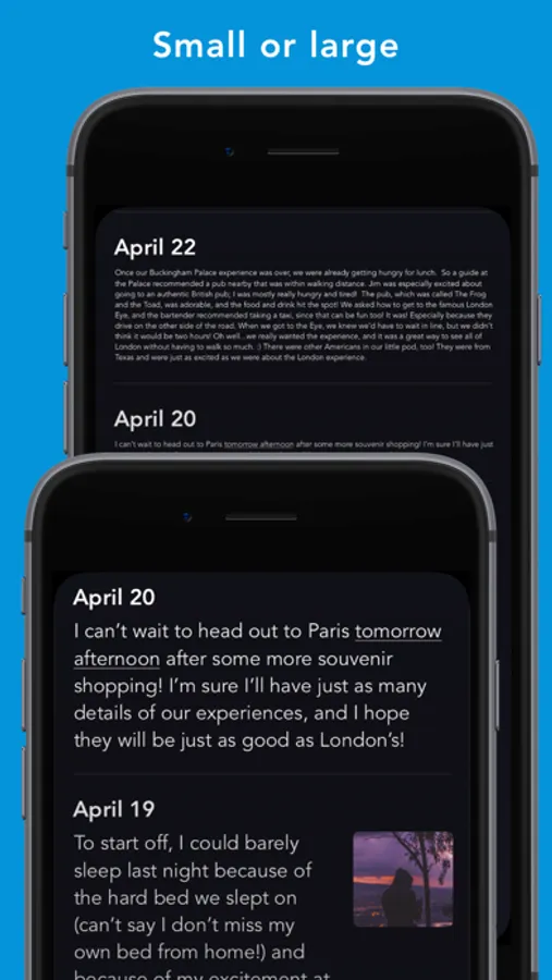 Quickly record each day in a continuous scrolling layout. Minimal design gives a positive reading and writing experience while using this journal.