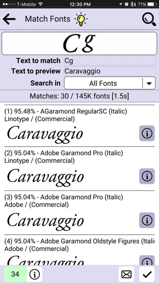 * Identifies any Latin letter using an online database of 150.000+ fonts