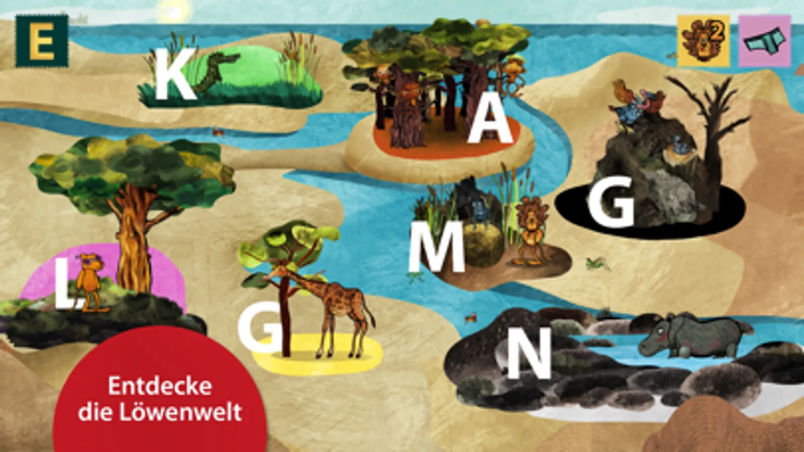 Gehe mit dem Löwen auf eine spannende Reise und spiele dich in 6 witzigen Minigames zum Welt-Wortemeister!