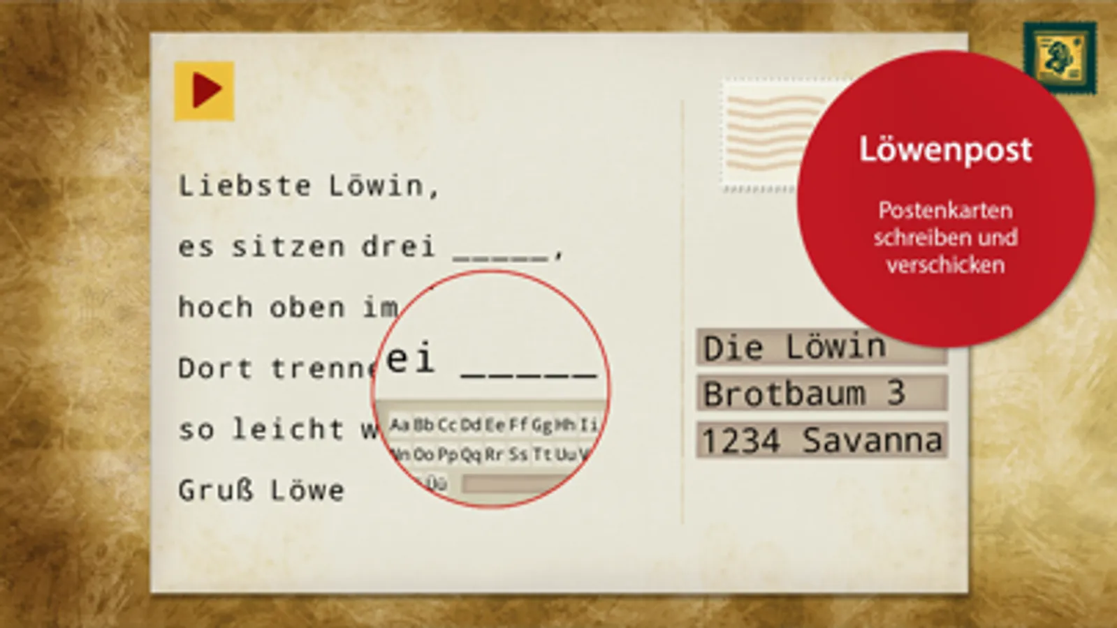 Die Grundlage dieses Lernspiels ist das in Grundschule und Kindergarten bekannte Bilderbuch „Die Geschichte vom Löwen, der nicht schreiben konnte“ von Martin Baltscheit.