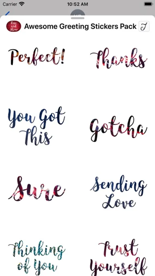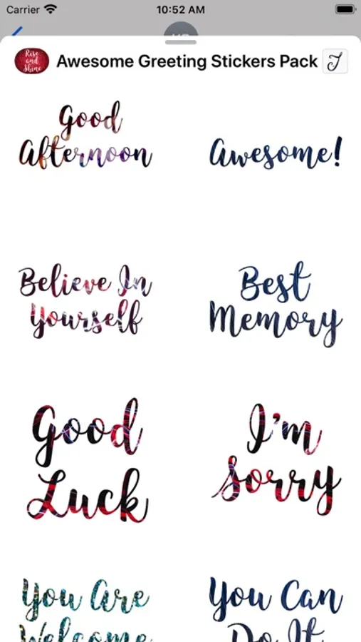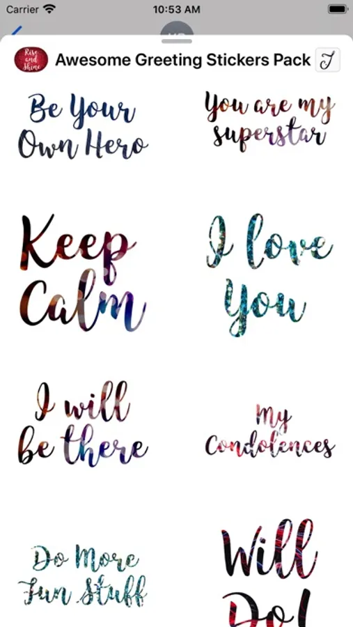 Motivational iMessage stickers pack ready for you to send to your loved one. Besides the normal greetings messages that you send, why not add some beauty to your hi-technology device, serve your artistic taste with this stickers and at the same time nurture, care and uplift your friends, family and people you know that need some encouragement at the moment. You can place the stickers on the conversation bubbles, images, or with the other stickers that come with this pack. Make your text message more personal today, create those smile on your receiver face that they will never forget and let them know how much you care for them and how much they mean to you.