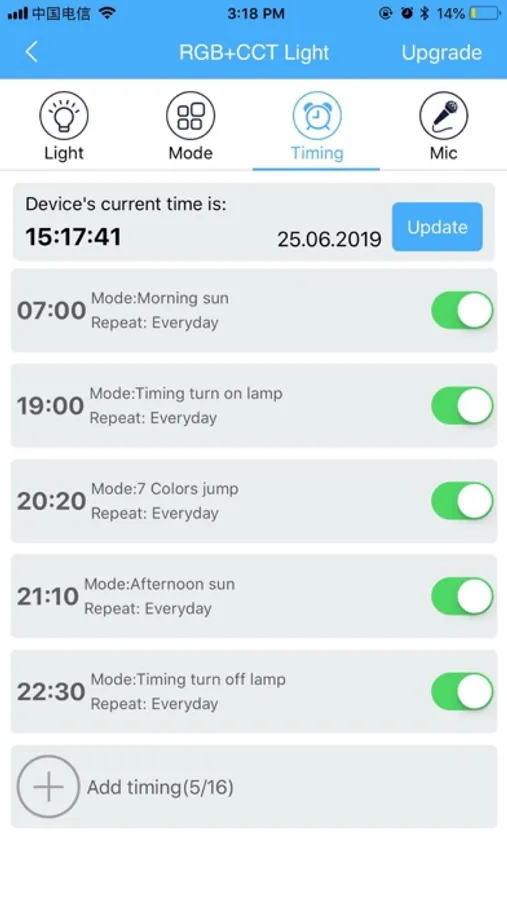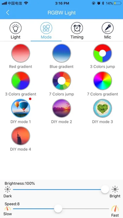4. Main functions: Timing and DIY mode and Group control and Scene control and Music and Microphone;