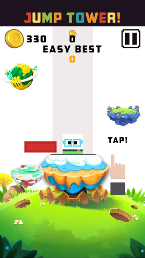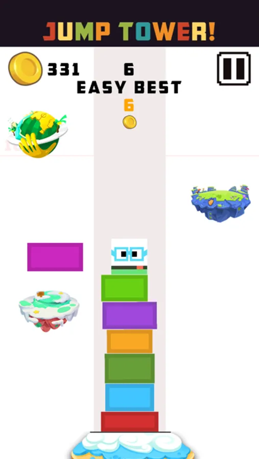 1, click on the screen, the lateral movement of the square foot, let the man continue to jump