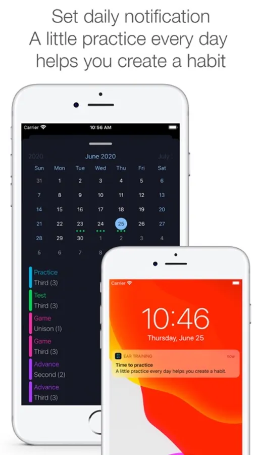 - Daily notification & Calendar: a little practice every day helps you create a habit