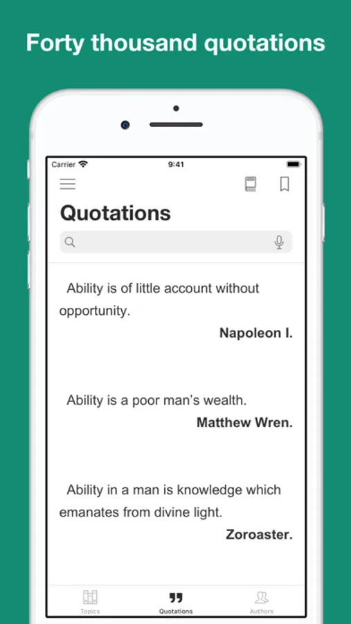 This app provides an offline version of Forty Thousand Quotations, Prose and Poetical. Quotations extracts on history, science, philosophy, religion, literature, etc., selected from the standard authors of ancient and modern times classified according to topic.