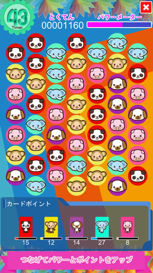 ・フィールドのどうぶつをうごかして4つつなげるとパワーメーターがふえるよ。
