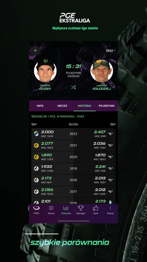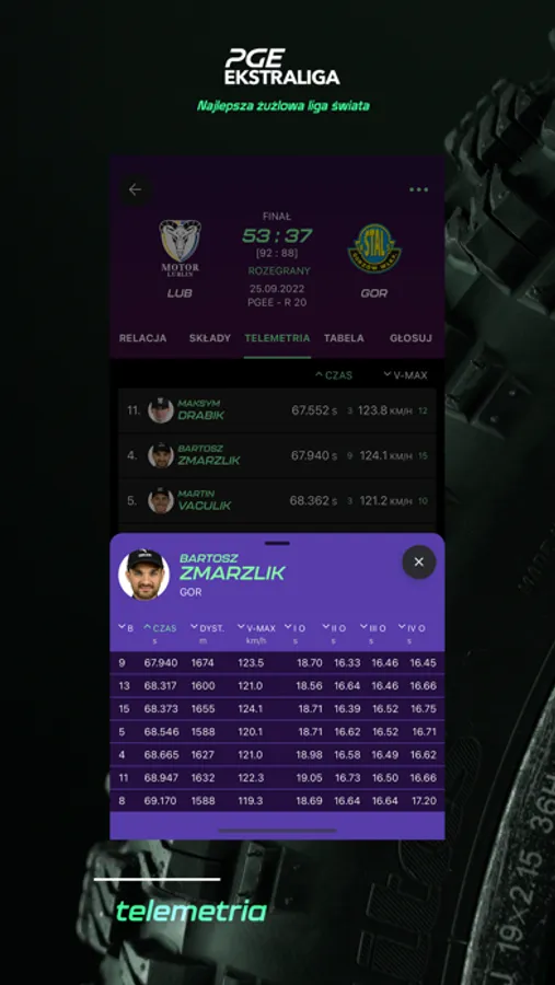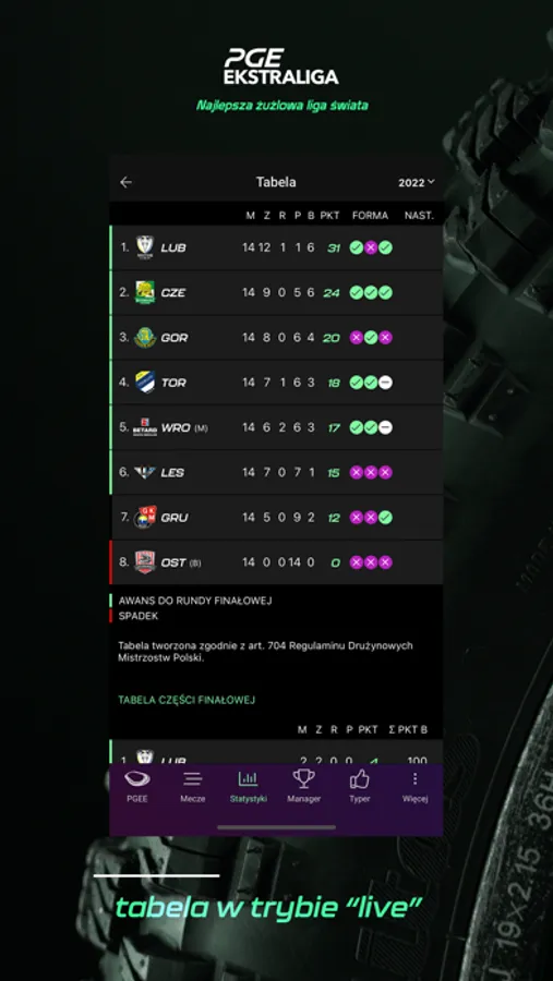 Free and official application of PGE Ekstraliga - World's Best Speedway League. It will give you live results of all the matches together with text reports from each race. Part of the application is the official game - Eliga Manager.