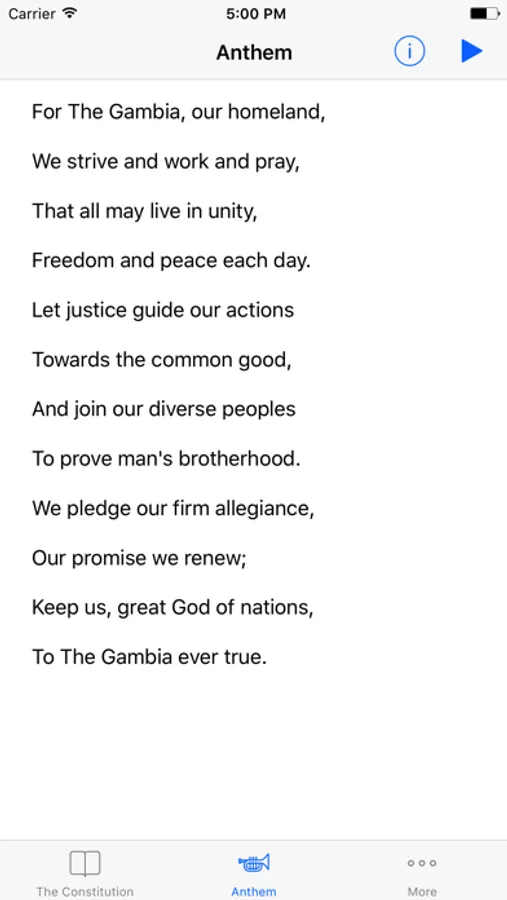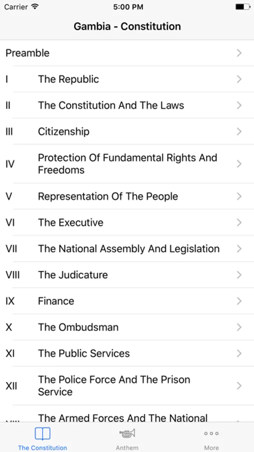 A highly accessible, easy to use app version of the Constitution of The Gambia, the supreme law of the Republic of The Gambia. The current constitution was enacted on 16th January, 1997, inaugurating the Second Gambian Republic.