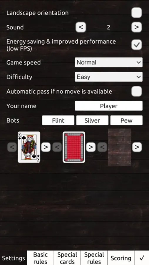 Mau-mau - The player who first discards all his cards wins. You can set rules for Switch, Mao, Prší, Last Card, Faraón