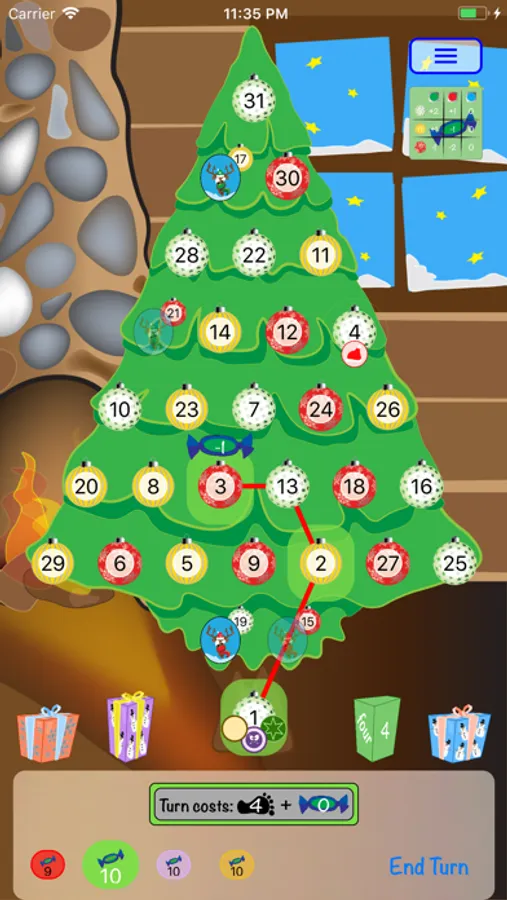 Decemberrr! is a simple "turn based" race style board-game for local use. Each day of December is marked by a bauble 31 in total. Who ever gets to bauble 31 the first wins. Choose present to reveal how many steps you may take and what will happen at your end destination. Add Chocolates from your stockpile to advance faster. Decide whether you want to move not…but at all costs try to avoid the Reindeer who will pinch your chocolates if they jump on you.