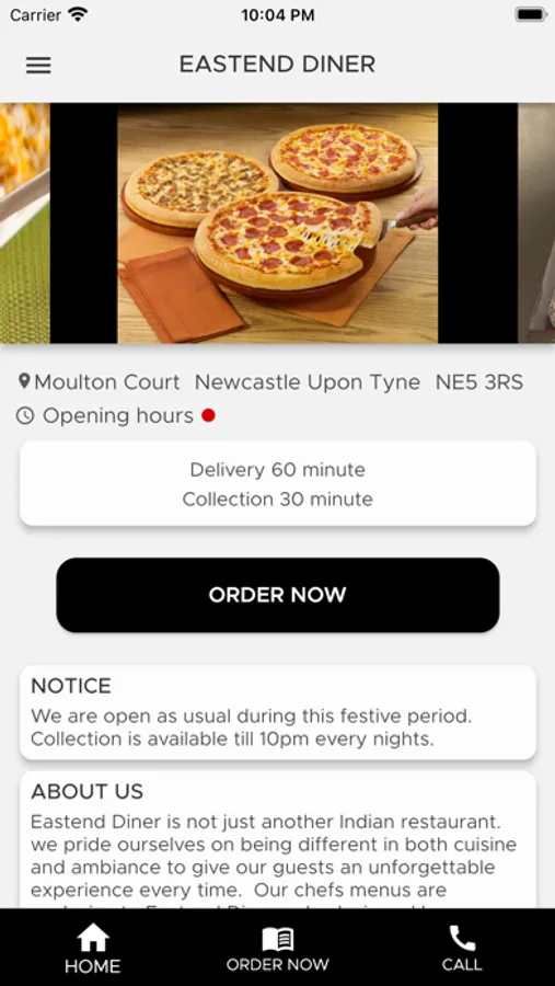 Eastend Diner is not just another Indian restaurant. we pride ourselves on being different in both cuisine and ambiance to give our guests an unforgettable experience every time. Our chefs menus are exclusive to Eastend Diner only, designed by our Eastend Diner chef who specialise in modern, fusion and authentic dishes. Our Chef has also won various awards including an award for 'BEST CHEF' on TV reality show 'THE CHEF' which was aired on Channel S. We have a range of Curries and Indian Pizzas and also provide a delivery service up to 10 miles from our shop. Like us on Facebook for the latest news and offers.
