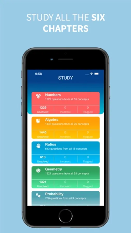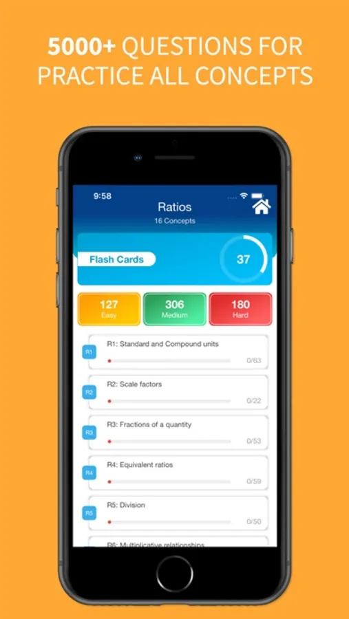 The app also helps you to monitor your progress and scores and shows your improvement by topic so that you can focus more or less on topics as required.