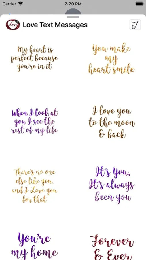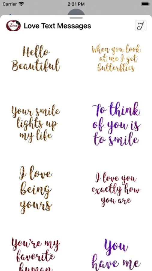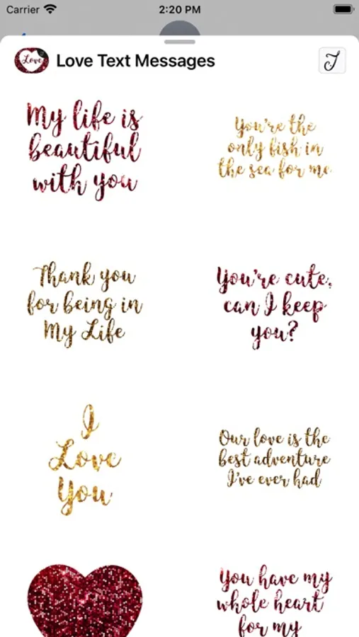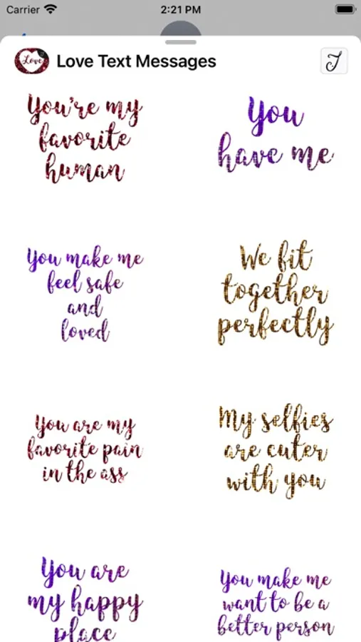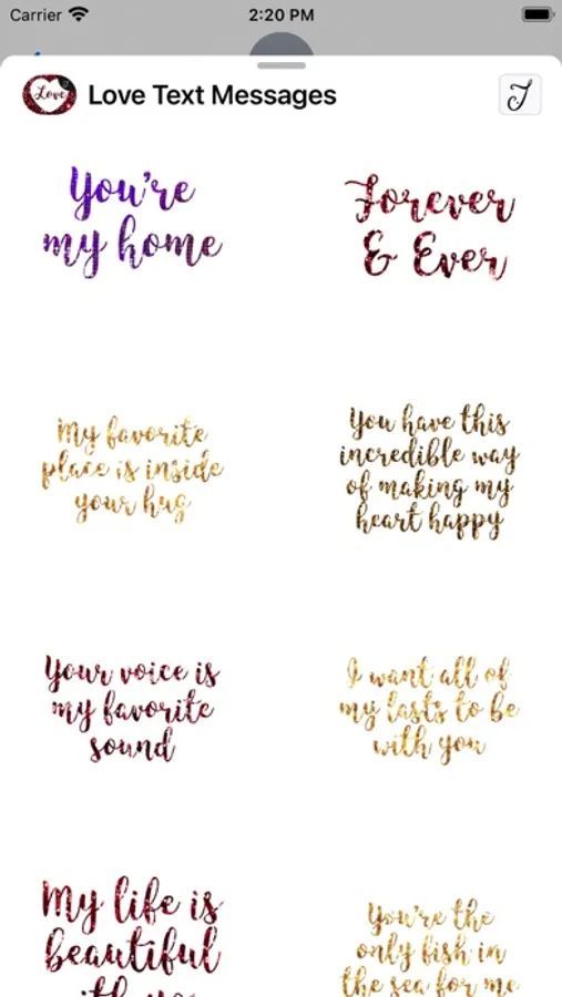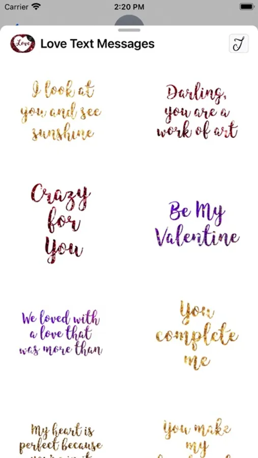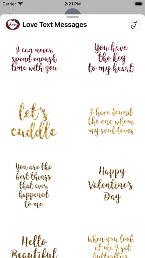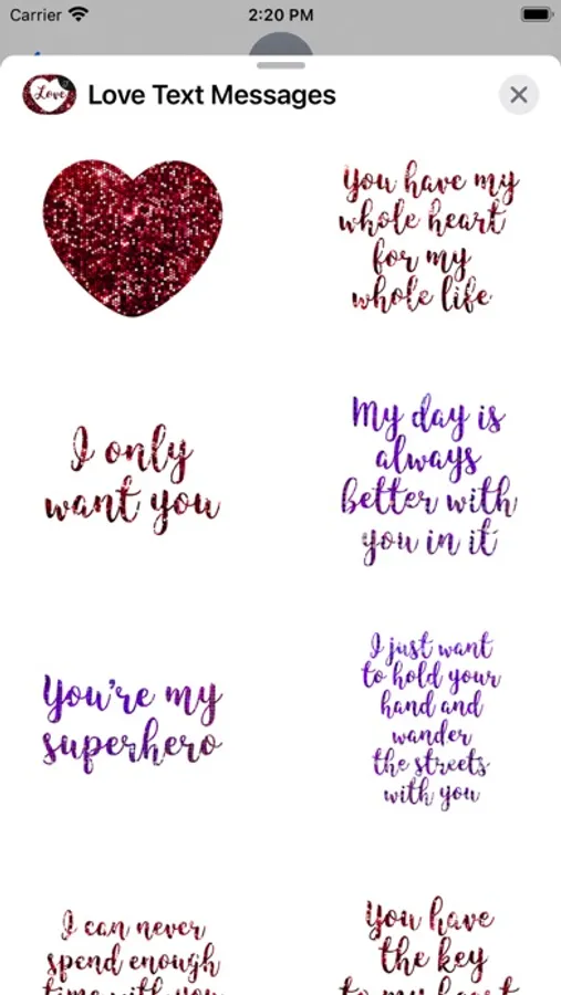 This stickers pack comes with beautiful and colourful types, sweet and short love message, easy to use in the conversation, just drag and drop, use them on the daily basis. Make every day Valentine's day.