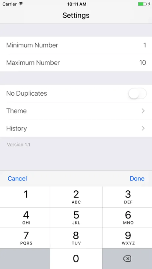 Tap the screen to generate a random number! You can adjust the minimum and maximum numbers in the settings (0 - 999).