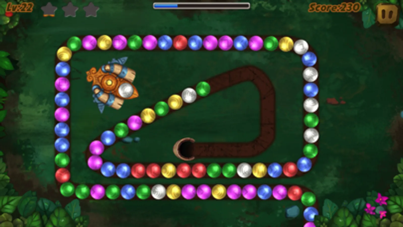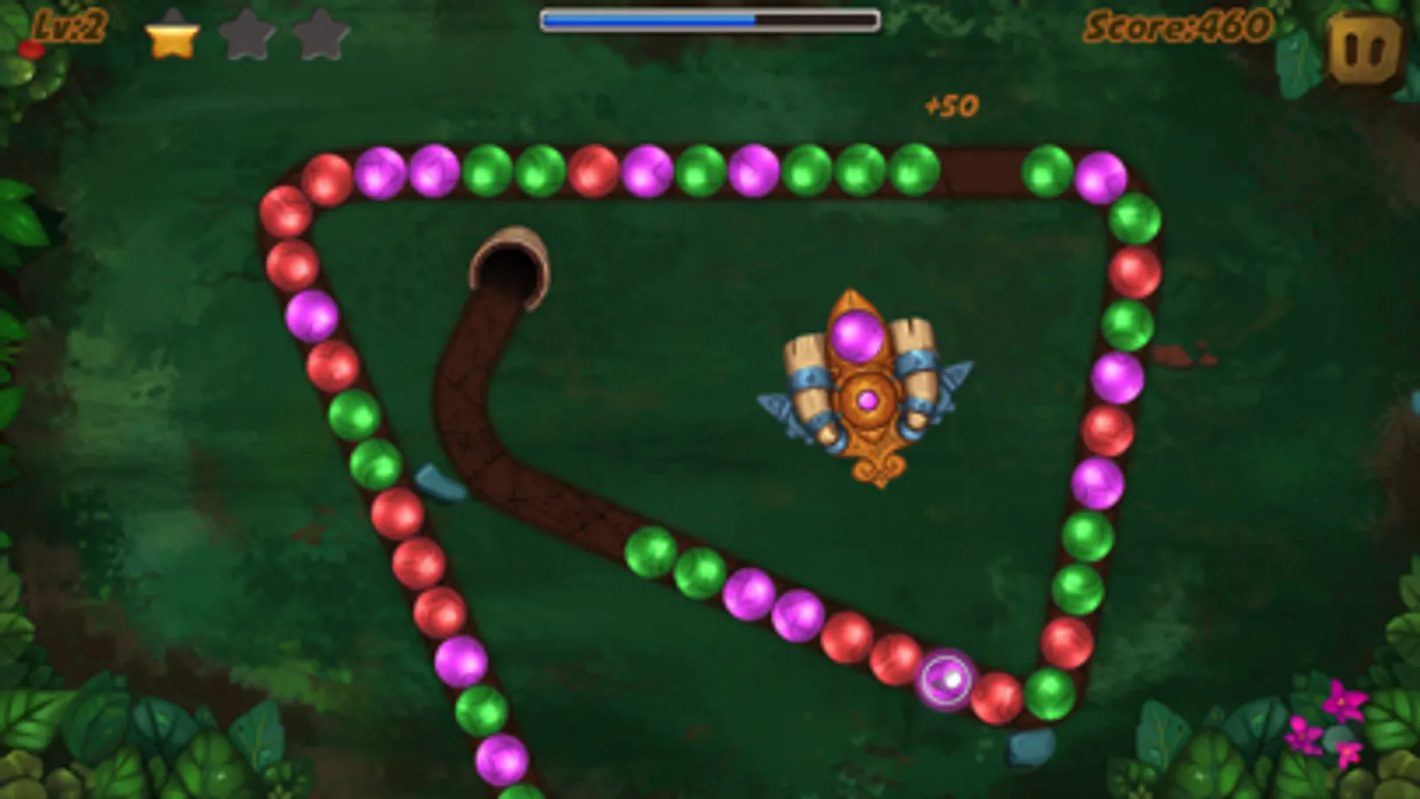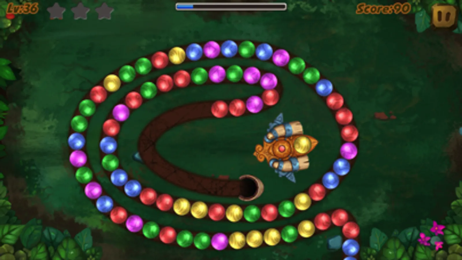 The objective is to match the marbles in groups of 3 or more in order to blast them. Eliminate all the marbles before they reach the end of the path. Making more combos and marbles connected to earn more scores and get three stars!