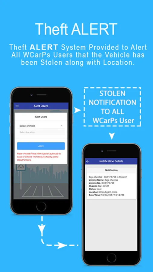 It Provided to Alert, All WCarPs Users About The Vehicle Theft along with The Location.