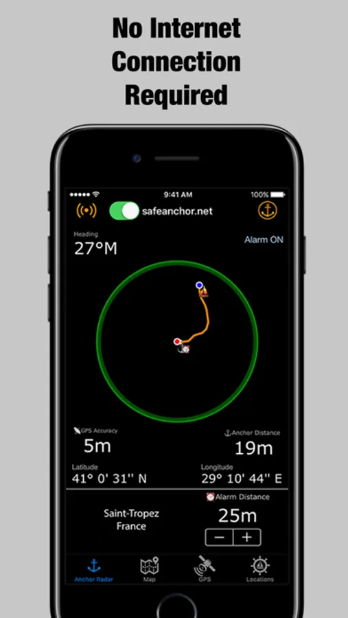 "We use SafeAnchor.net in addition to our built in GPS anchor alarm system" - sailingbritican.com