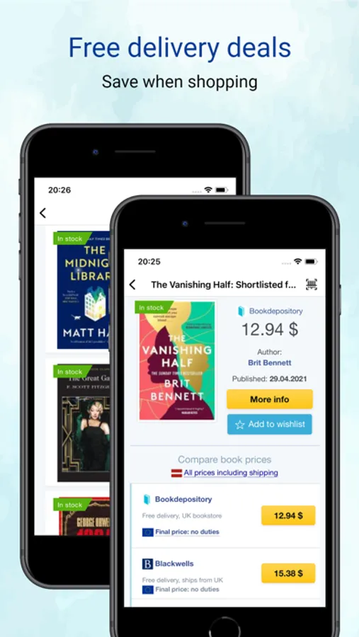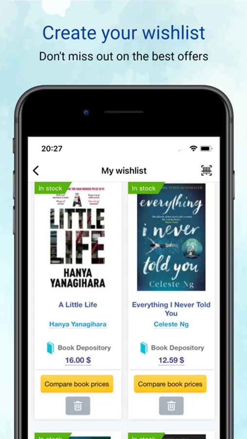 Many bookstores offer free delivery on all items, no minimum spend required, compare book prices instantly. 20 million books, find bargain deals and best selling books. My wishlist will help you to track book prices, create your own favorite book list. Useful book shopping app for book lovers.