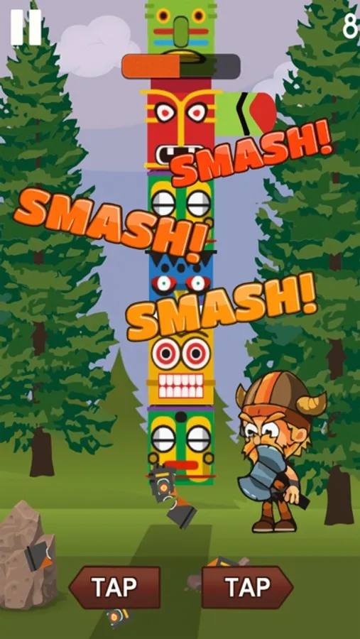 Smash The Totem is a simple yet challenging fast paced arcade game. Just tap the screen on the left or right side of the screen to smash the totems but be careful not to get in the head.