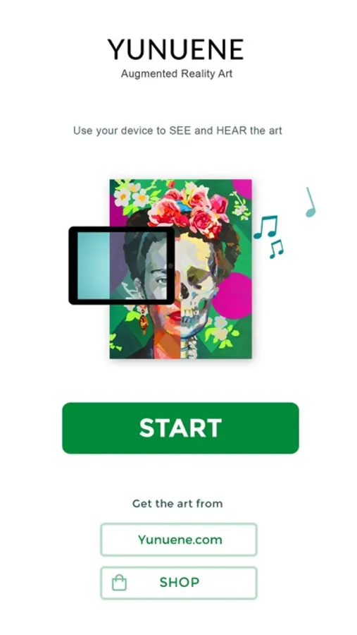 This app complements Yunuene's art, conveying her intention beyond the canvas. To see the Augmented Reality in action, go to yunuene.com to find the art and visualize it with your device. Enjoy!