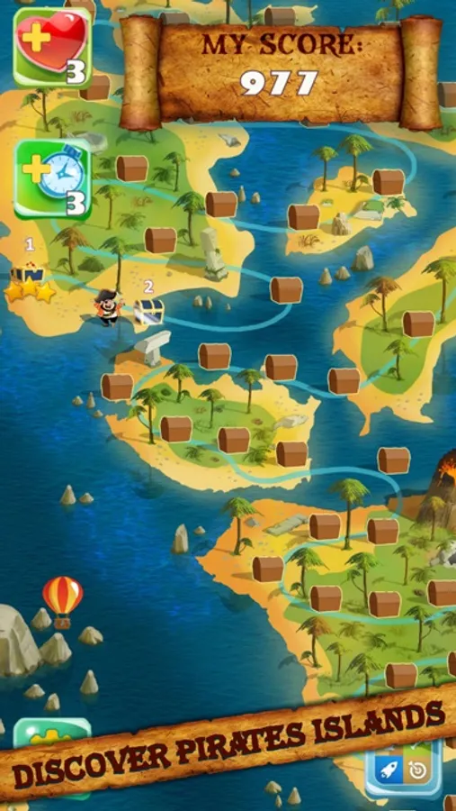 Everyone knows that Pirates is not fans of healthy lifestyle. Maybe that's why the leader of pirates, Joe Hock can not remember where he hide the treasures. Most of all they are somewhere on Mystical Bermuda Triangle Islands. But it is not enough to find hidden treasures, you need to win very smart puzzles and open clever boxes. Joe left this idea many years ago, and now on Pirates pension. But You have chance to find his gold and diamonds. Discover all islands and win Puzzles!