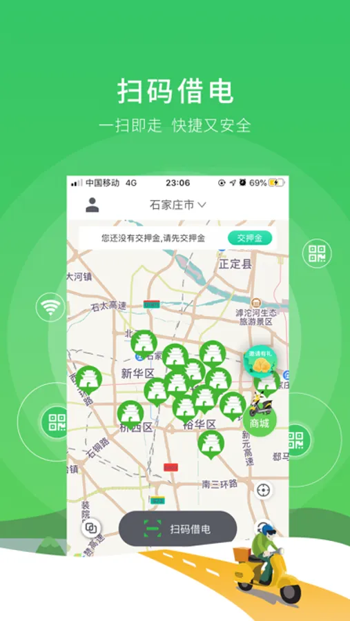 3、一键扫码换电,避免繁琐的借/还电流程,节省骑手的宝贵时间。