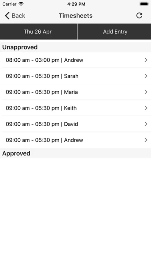 3. Approve timesheets. View scheduled hours against time clock or employee submitted times.