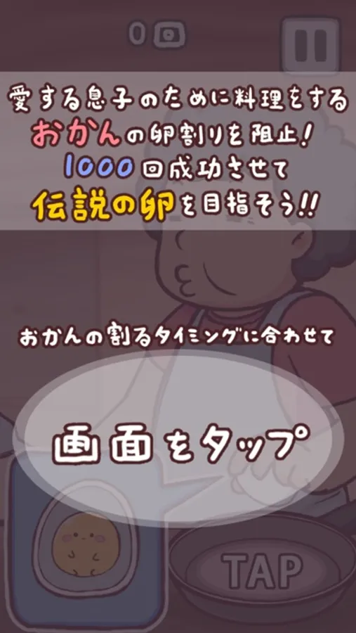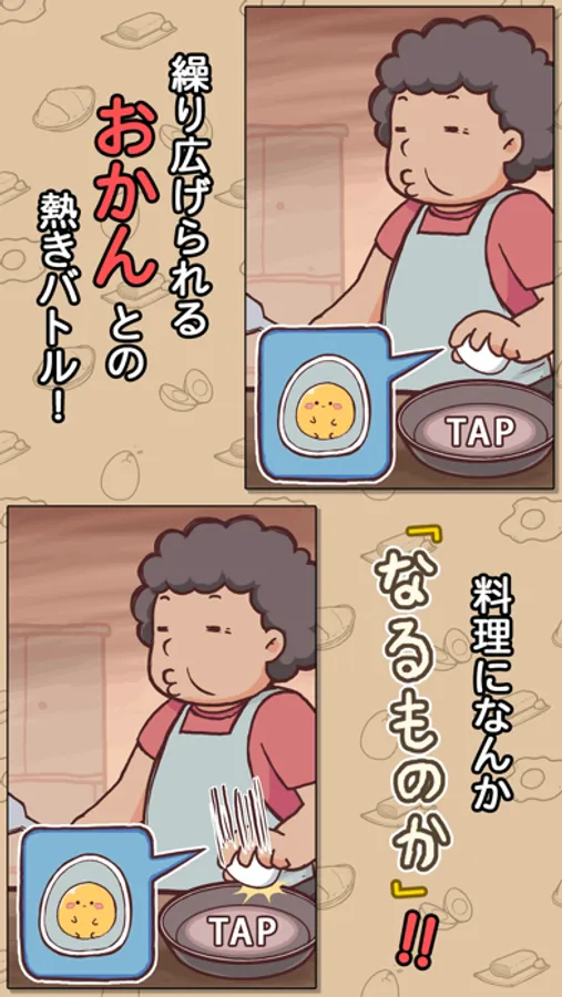 タイミングよくタップして“おかん”の卵割りを阻止しよう!