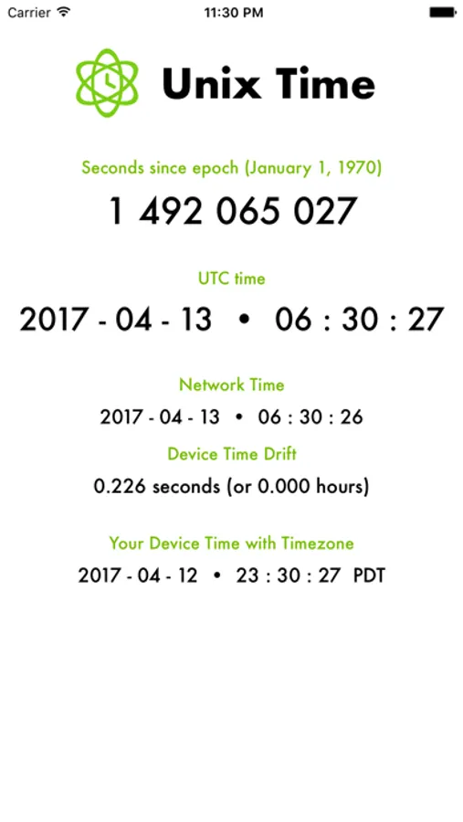 Unix Time UTC is a clock for developers showing the current time on device from the Unix epoch (1970-01-01 00:00:00 UTC).
