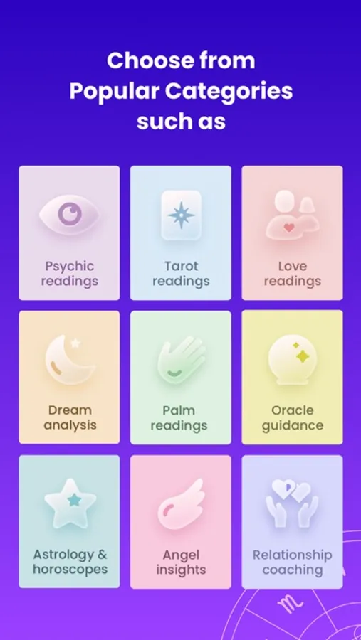 With over 91.5% prediction accuracy as rated by real users, Purple Garden is the number one app for psychic predictions worldwide. Featuring everything from live relationship advice to tarot readings to, no matter your problem, we have the solution.