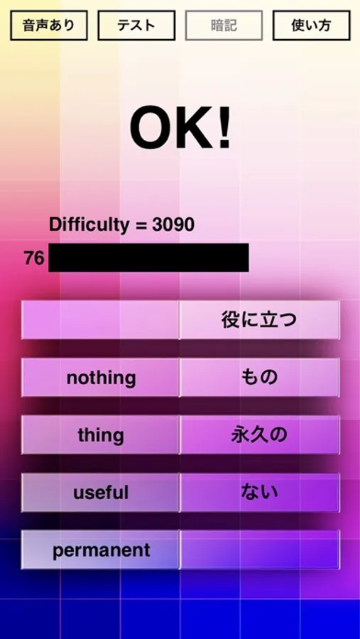 With this application, you can memorize Japanese fun and efficiently with a game feeling!