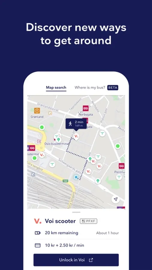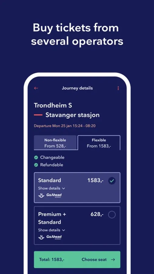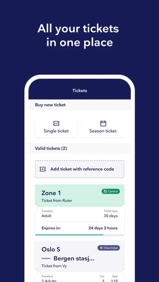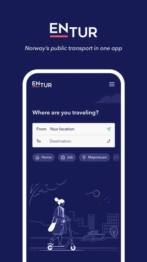 The app makes it easy for you to travel with public transport wherever you are in Norway.