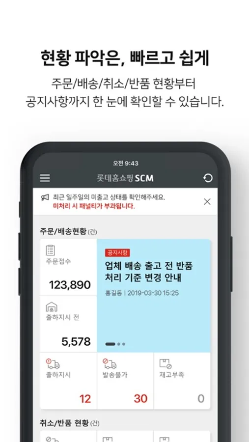 SCM앱은 롯데홈쇼핑 파트너사를 위한 전용 앱입니다.