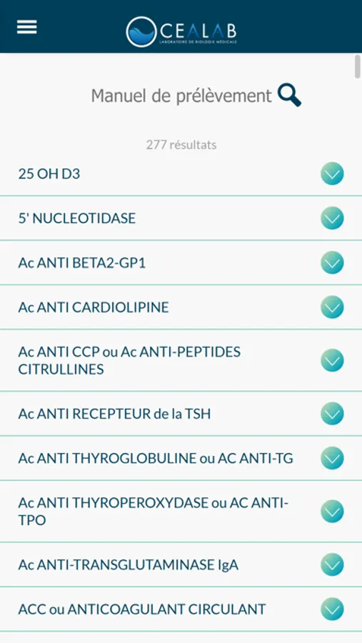 Les laboratoires Océalab vous proposent l'application "Manuel de prélèvement", destiné au professionnels de santé. Vous retrouverez pour chacun des prélèvements toutes les règles nécessaires à l'obtention d'une analyse correcte. Disponible en-ligne et hors-ligne, vous aurez à tout instant accès à la base d'informations.