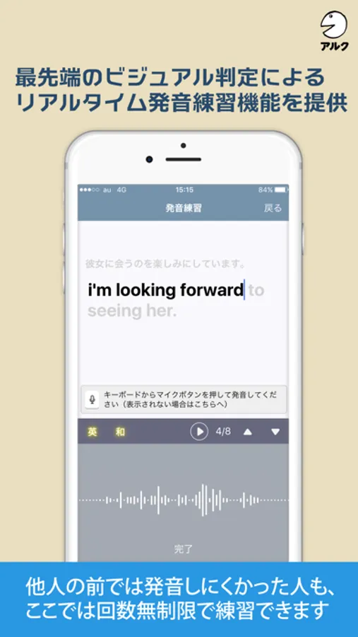・ 発音練習モード: 音声認識機能を使用し、発音を練習することができます。
