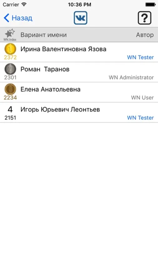 6. Просмотр списка рейтингов опубликованных имен "Top 100".