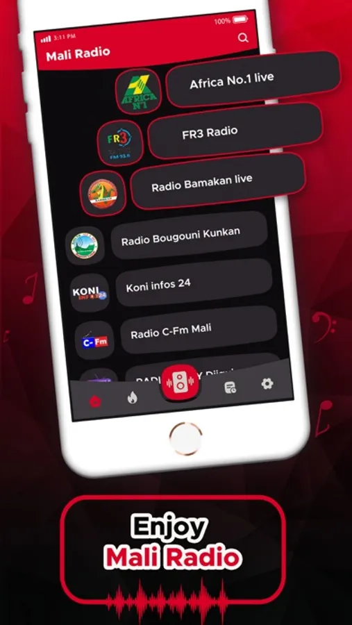FM Radio Mali All Stations is a mobile application that allows its users to listen more radio stations from all over Mali.