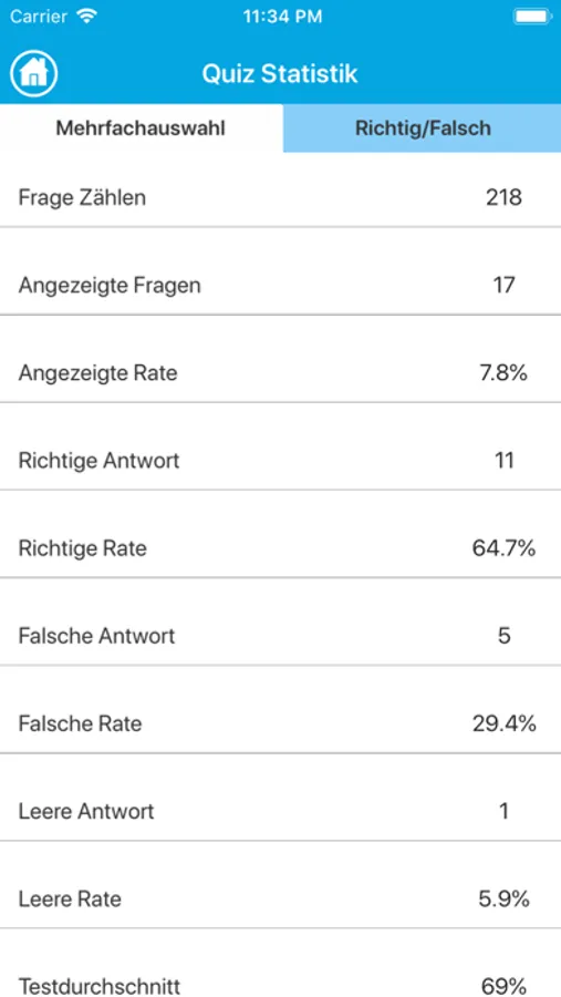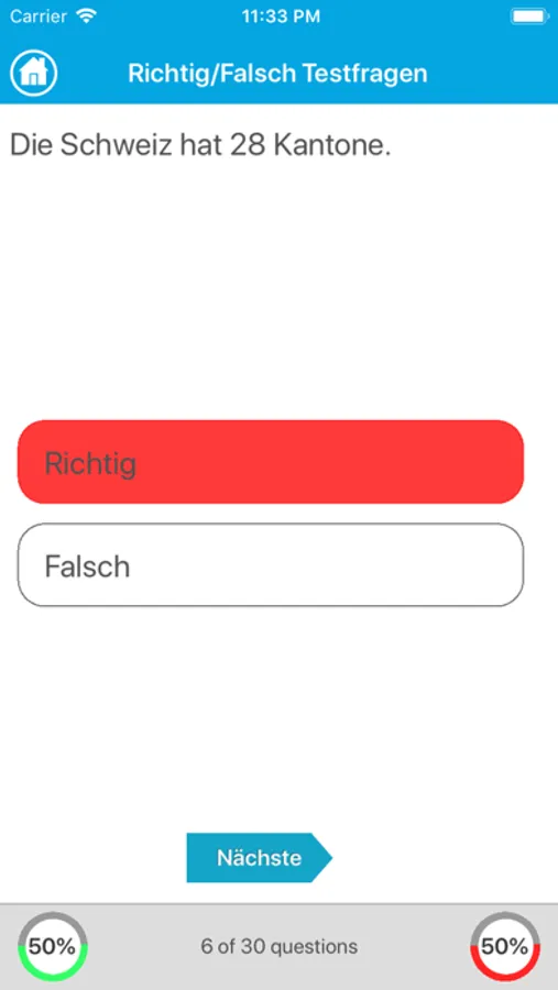 - Es gibt 2 Quiz-Modus. Multiple-Choice Quiz und Richtig/Falsch Quiz.