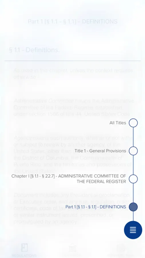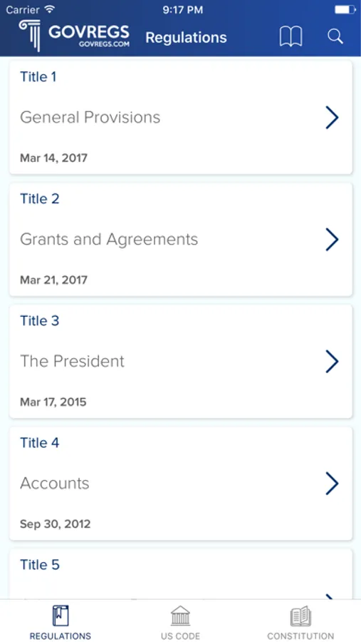 The GovRegs app is navigable as well as searchable. All data is stored on our server, which checks for updates to the law regularly. This ensures that you are always accessing the most current laws and also that your mobile device's storage space is not hogged.