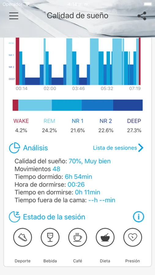 Ofrece las siguientes funciones: monitoriza tus patrones y ciclos de sueño a lo largo de toda la noche. Además esta app móvil gratuita te permite visualizar tus ciclos de sueño, ver los informes y conclusiones de cada sesión de sueño.