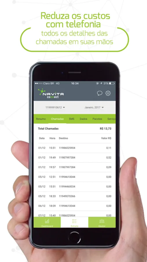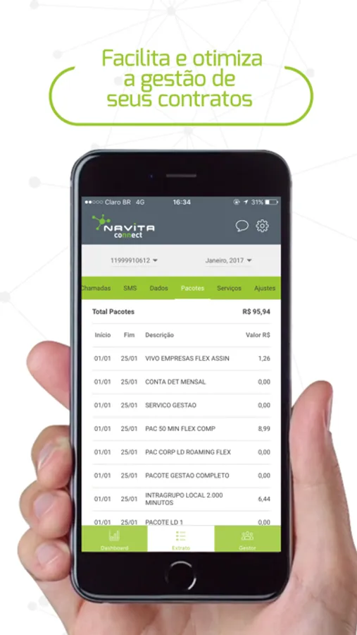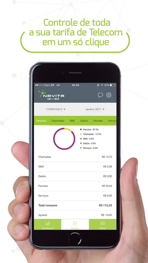 • Visão consolidada de toda sua fatura (link de dados, telefonia fixa, móvel)