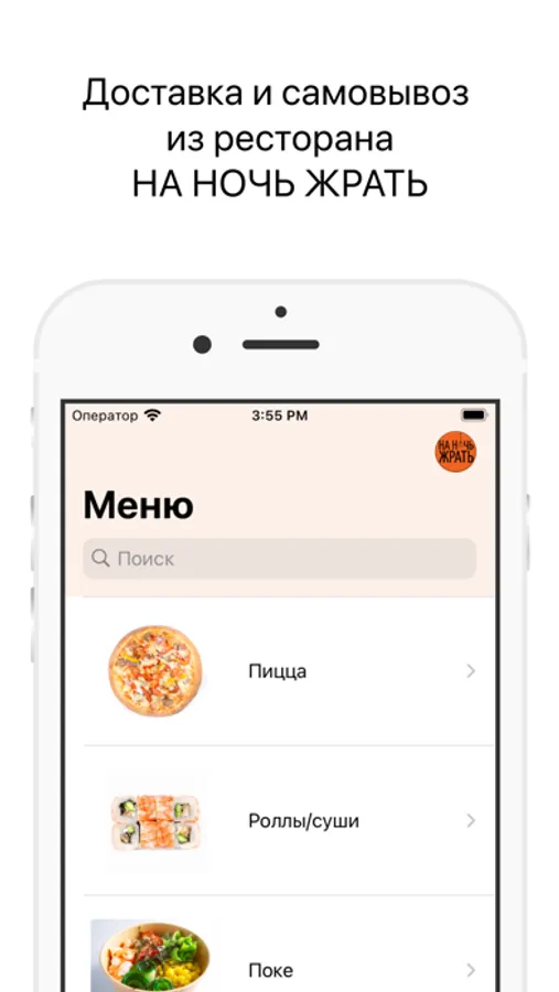 Мобильное приложение «НА НОЧЬ ЖРАТЬ» осуществляет доставку горячей вкуснейшей пиццы на любой вкус, пасты, салатов, разнообразных блюд японской кухни, а также напитков.