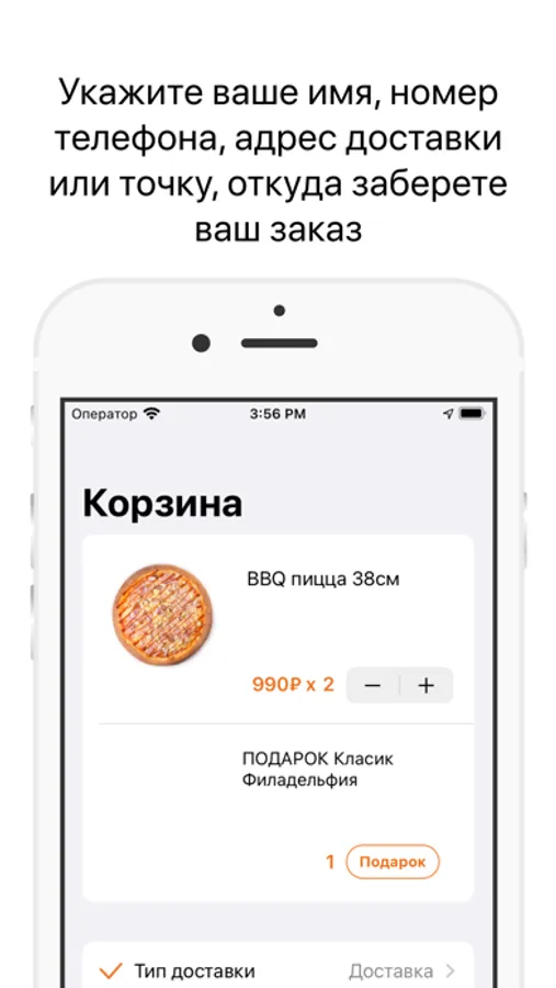 Укажите время, когда хотите прийти за своим заказом или выберите доставку с указанием времени и адреса доставки.